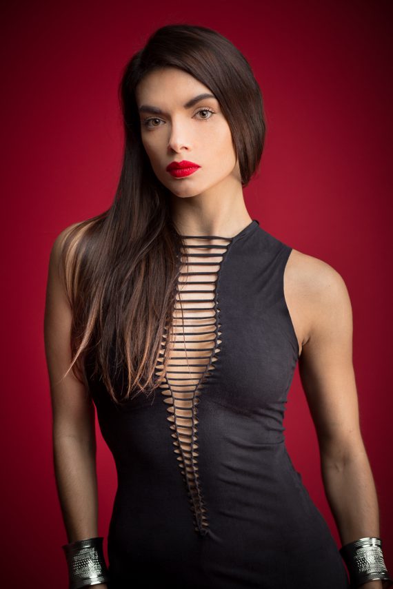 Robe longue chic, décolleté plongeant, dos nu découpée et tressée COCO magnifiquement coupé entièrement à la main