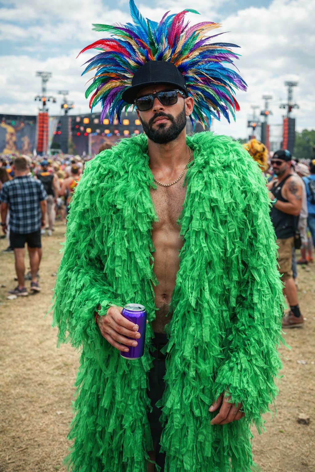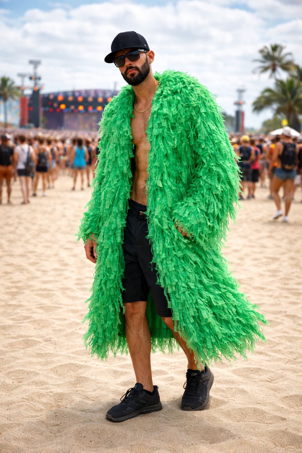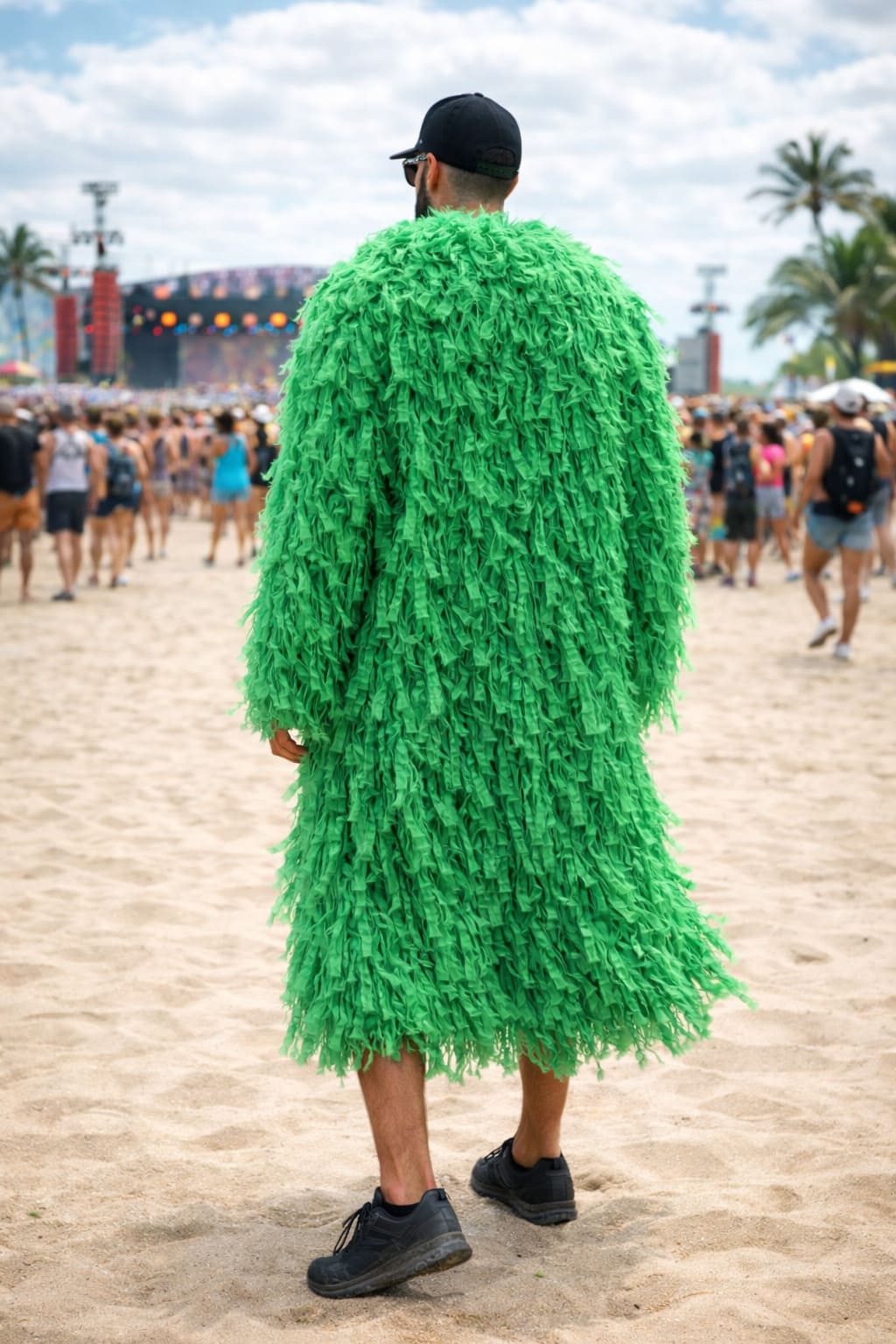 Despite its impressive volume, the coat remains lightweight and airy, allowing the fringes to move beautifully with the body or the wind. The result is a striking couture piece designed for stage performances, fashion editorials, festivals, Burning Man, music videos, and artistic events.